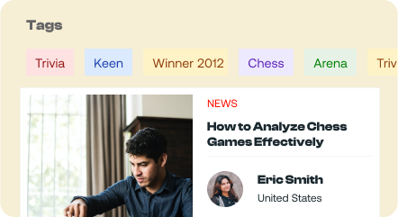 View upcoming online and offline events. Host your own tournaments and get rewarded for growing the chess community.